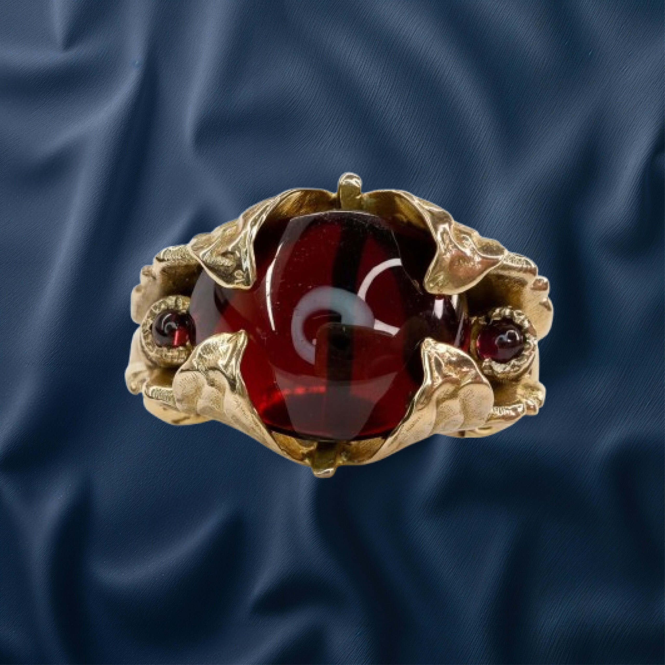 Inspired by the Greek Nike, featuring stylized wings and a garnet cabochon. Classical elegance meets contemporary design. Jewellery design is delivered with a certificate of authenticity.