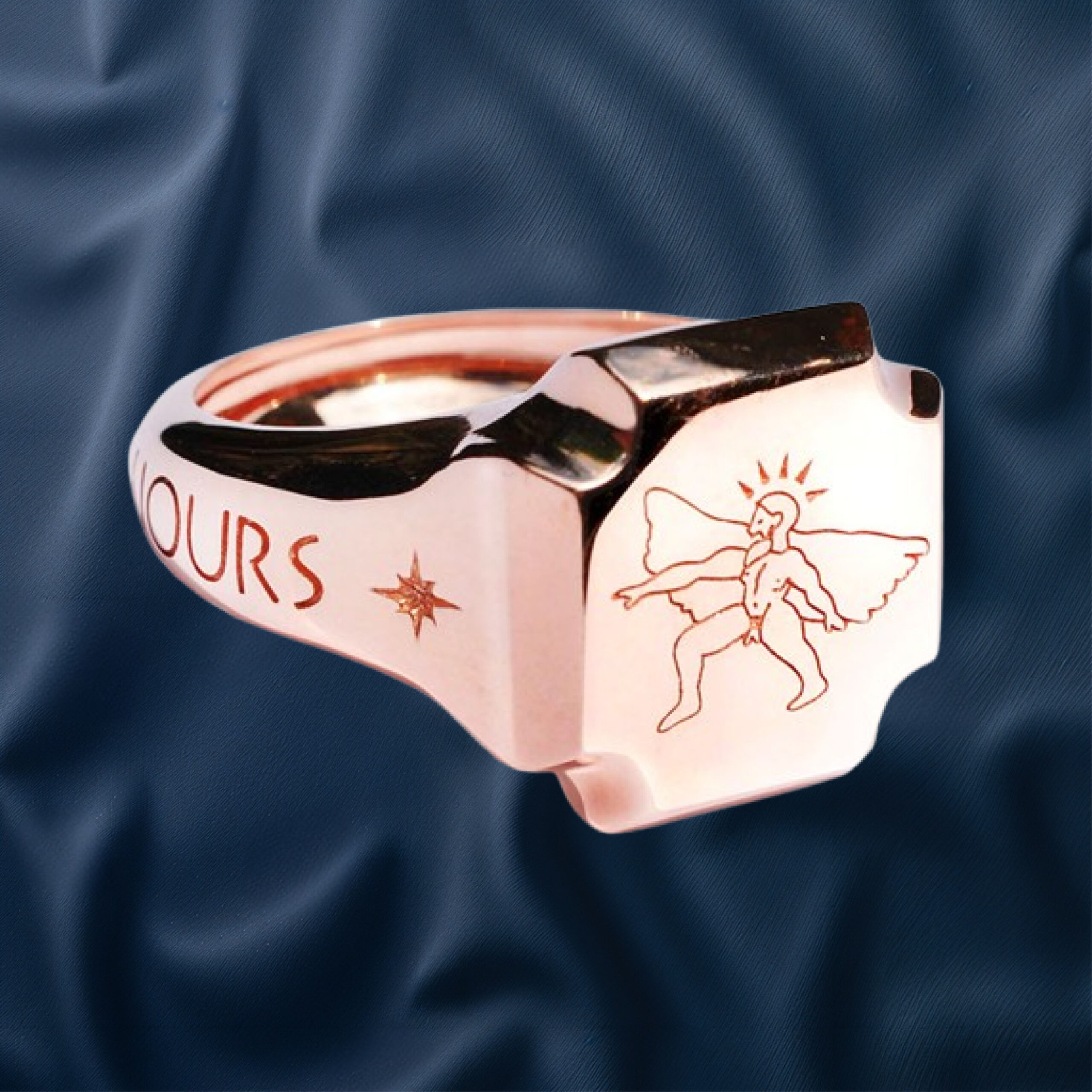 Kuros is for the ancient Greeks the male Archetype. The essence does not determine the form, the appearance is not necessarily who we are. We can be the man we want to be. This ring symbolises just that.