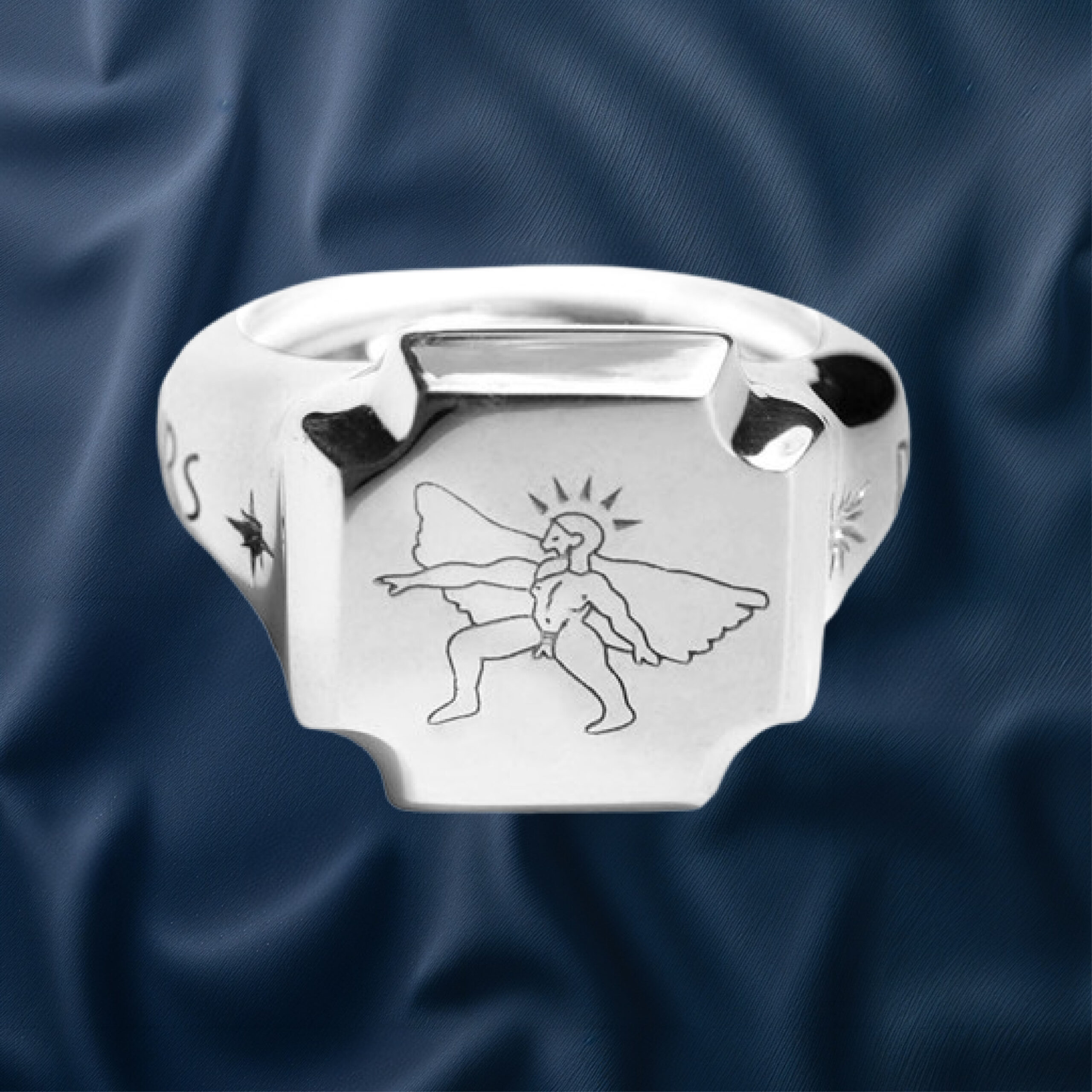 Kuros is for the ancient Greeks the male Archetype. The essence does not determine the form, the appearance is not necessarily who we are. We can be the man we want to be. This ring symbolises just that.